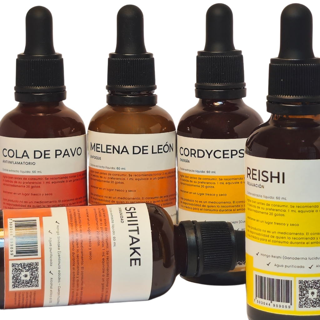 ¡Sporo trae para ti el kit definitivo para un bienestar integral! Nuestro exclusivo kit combina los cinco extractos líquidos de hongos más poderosos: Reishi, Cordyceps, Melena de León, Shiitake y Cola de Pavo. Prepárate para disfrutar de un impulso completo para tu salud y vitalidad.